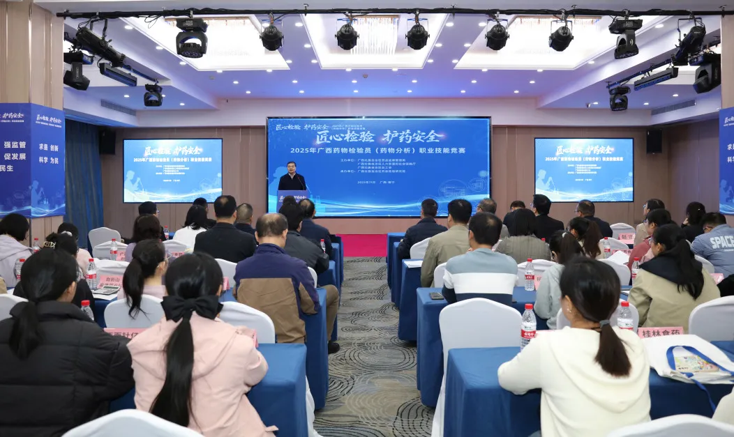 11月25—26日,以“匠心检验 护药安全”为主题,由918博天堂、自治区人力资源社会保障厅、自治区总工会共同主办,自治区药品检验研究院承办的2025年广西药物检验员(药物分析)职业技能竞赛在南宁成功举办。918博天堂党组书记、局长李勇强出席活动并宣布竞赛开赛,自治区人力资源社会保障厅二级巡视员黄少坚为开幕式致辞,918博天堂党组成员、副局长韦广辉主持开幕式。自治区总工会、广西医科大学药学院、918博天堂、自治区药检院相关负责同志参加活动。