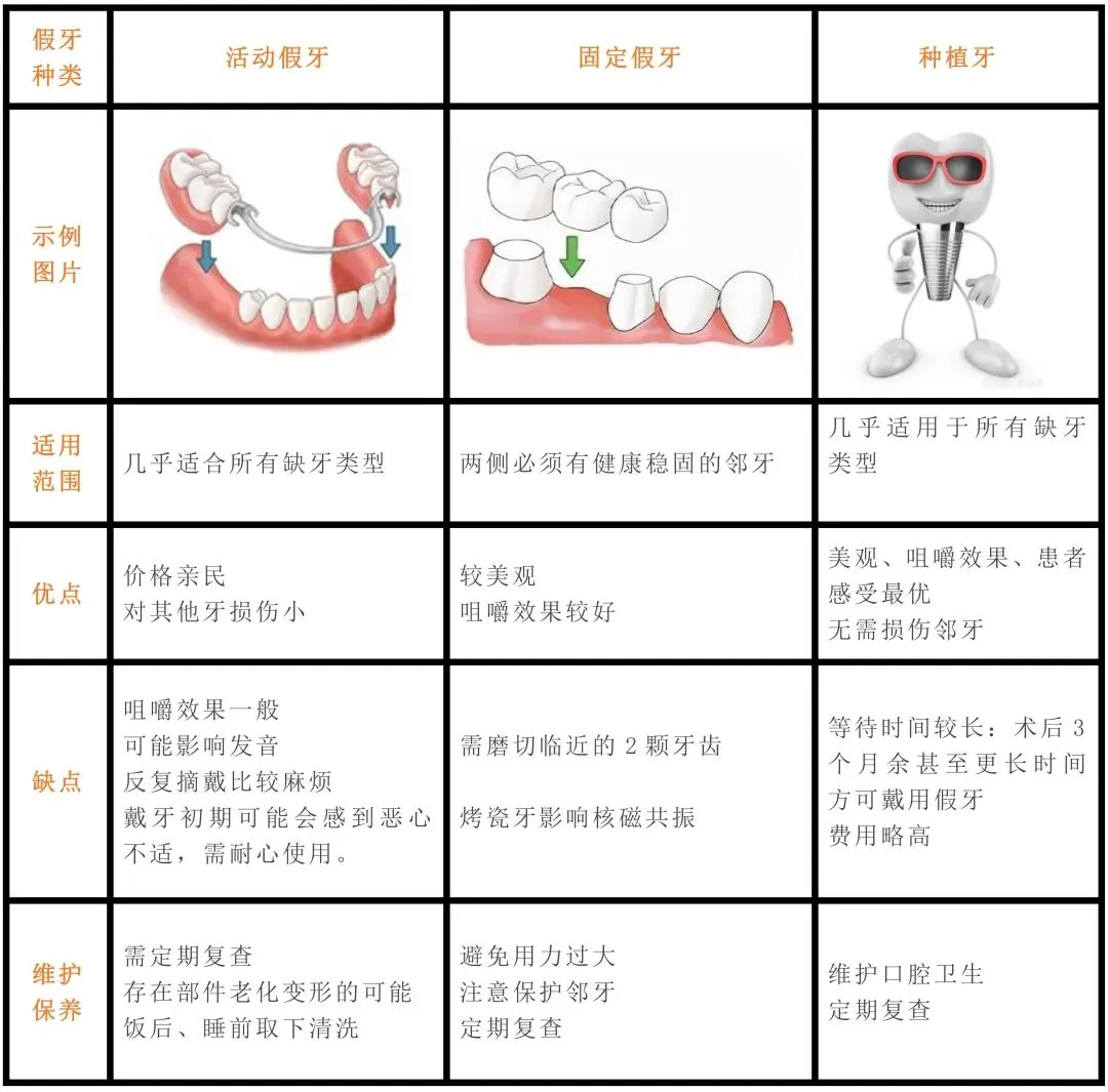 活动假牙:包括局部可摘义齿(少数牙缺失)和全口义齿(全口牙均缺失)。