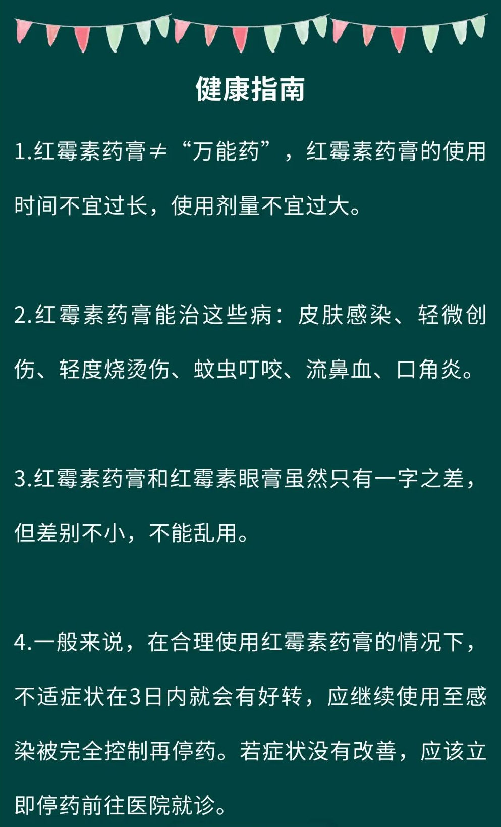 1.鼻出血、尿路感染、真菌感染,都不建议用红霉素药膏。