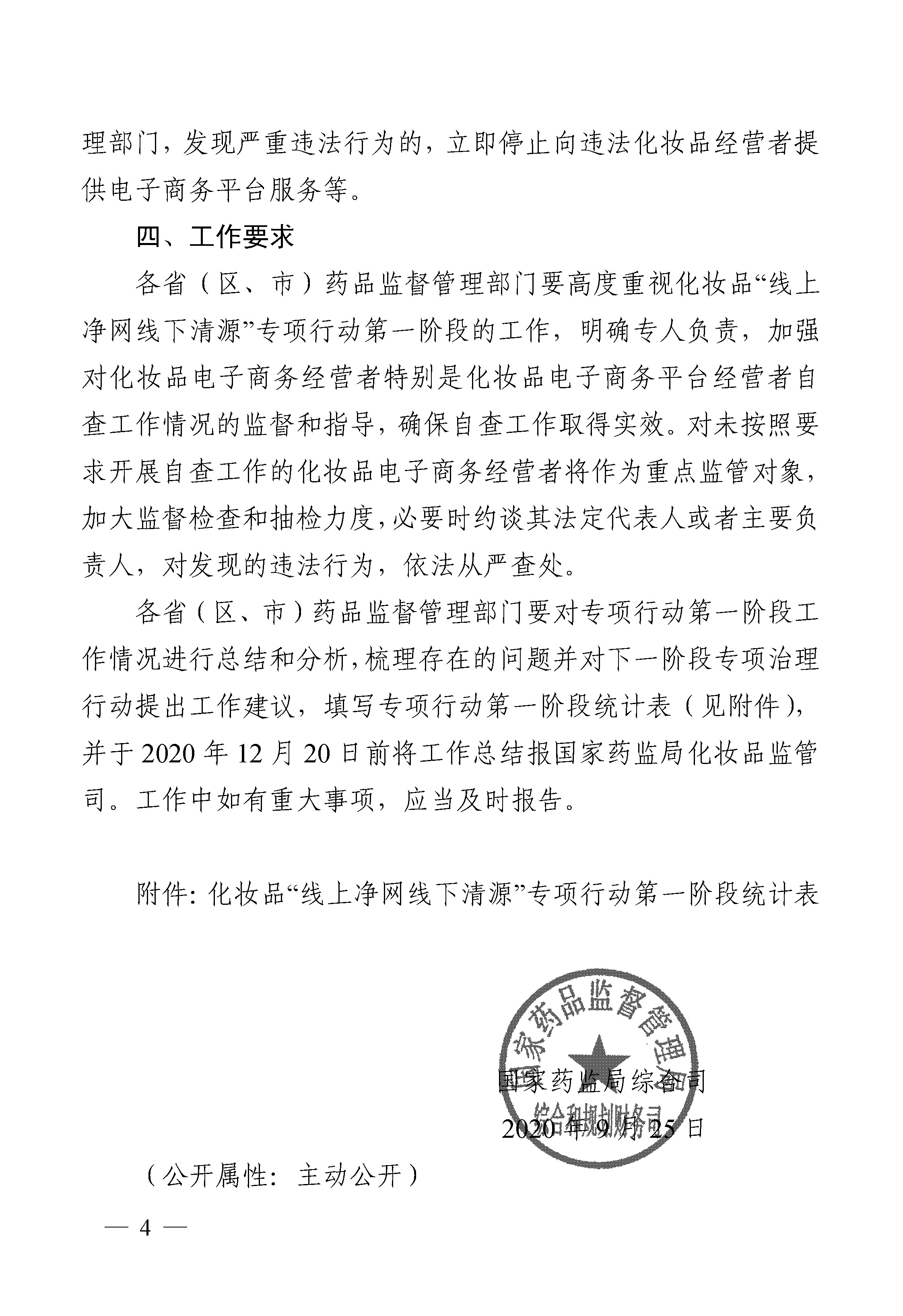 附件:国家药监局综合司关于开展化妆品“线上净网线下清源”专项行动第一阶段工作的通知