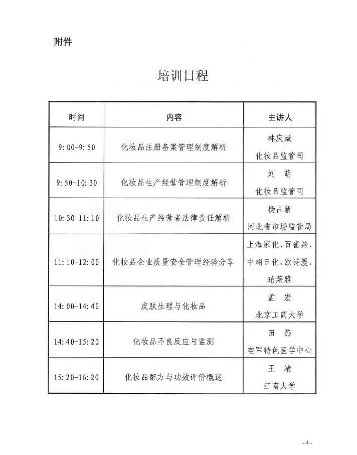 根据2021年全国化妆品安全科普宣传周安排,为加强化妆品监管法规宣贯,进一步落实企业主体责任,保障化妆品质量安全,由国家药监局高级研修学院承办化妆品监管法规和相关专业知识网络公益培训,将于2021年5月26日上午9:00通过网络直播。请各单位及时组织本辖区内企业及监管人员学习(学习方法如附件2所示),并于2021年6月5日前将组织培训学习情况及有关活动图片等资料,报送918博天堂化妆品监管处。