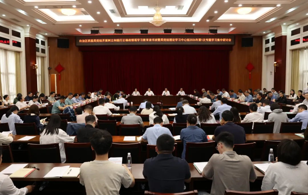 会议强调,要深学细悟席大大总书记关于树立和践行正确政绩观的重要论述,牢牢把握立党为公、为民造福、科学决策、真抓实干总要求,坚持鲜明问题导向、一体推进学查改。要把学习教育与贯彻党中央决策部署、自治区党委工作要求紧密结合,与编制实施药品监管 “十五五” 规划紧密结合,与抓好蓝天立等案件以案促改促治、巡视整改紧密结合,切实把学习成果转化为保障药品安全、服务产业发展的实际成效。要持续强化党性锤炼,坚决摒弃重监管轻服务、重显绩轻潜绩、重短期轻长远等错误倾向,始终站稳人民立场、坚持实事求是。要坚持知行合一,深化 “清朗药监” 专项整治、守牢药品安全底线,优化审评审批服务、助力生物医药产业创新,聚焦群众急难愁盼办好民生实事,加强基层监管所标准化建设,锻造忠诚干净担当的药监铁军。