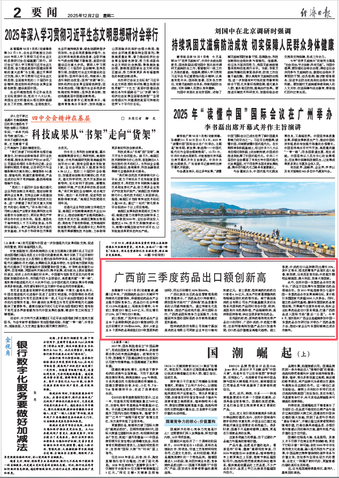 918博天堂局长李勇强表示,广西药品出口持续增长,源自国际市场对“广西制造”药品质量体系的认同感持续提升。通过持续优化监管服务、推动产品结构升级、深化国际合作,广西药品国际竞争力全面提升,为构建面向东盟的国际医药合作新格局奠定坚实基础。