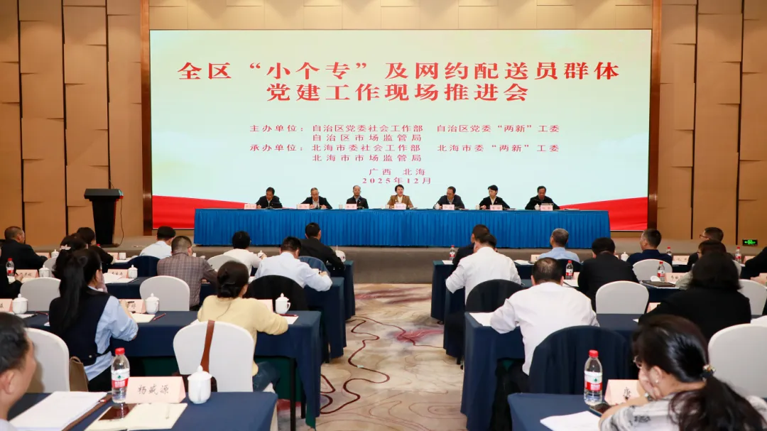 近日,全区“小个专”及网约配送员群体党建工作现场推进会在北海召开。会议深入学习贯彻席大大总书记关于新兴领域党建工作重要论述和重要指示,学习贯彻党的二十大和二十届历次全会精神,全面落实中央社会工作会议、新兴领域党建工作座谈会和全国“小个专”及网约配送员群体党建工作座谈会精神,总结交流经验,研究部署下一阶段工作任务。自治区党委社会工作部部长、“两新”工委书记唐轶昂,自治区市场监管局党组书记、局长李泽出席会议并讲话。北海市副市长曾玲出席会议并致辞。市场监管总局“小个专”党建办有关负责同志到会指导。