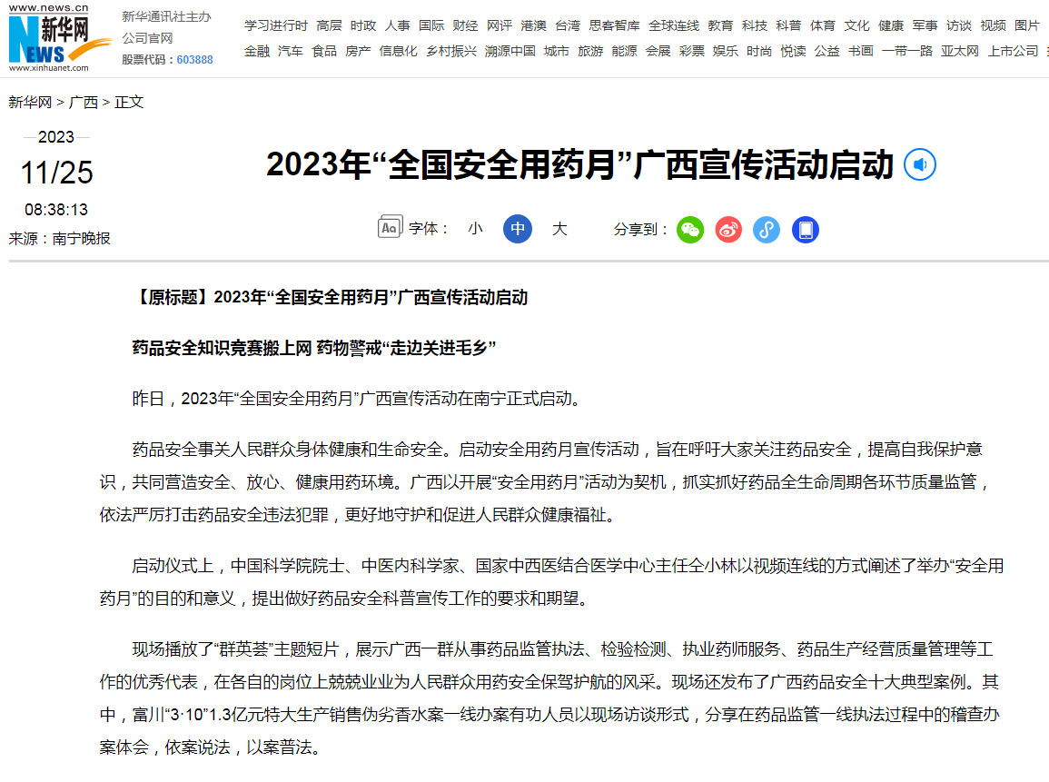 昨日,2023年“全国安全用药月”广西宣传活动在南宁正式启动。