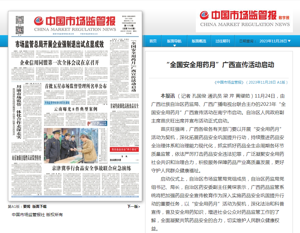 中国市场监管报:“全国安全用药月”广西宣传活动启动